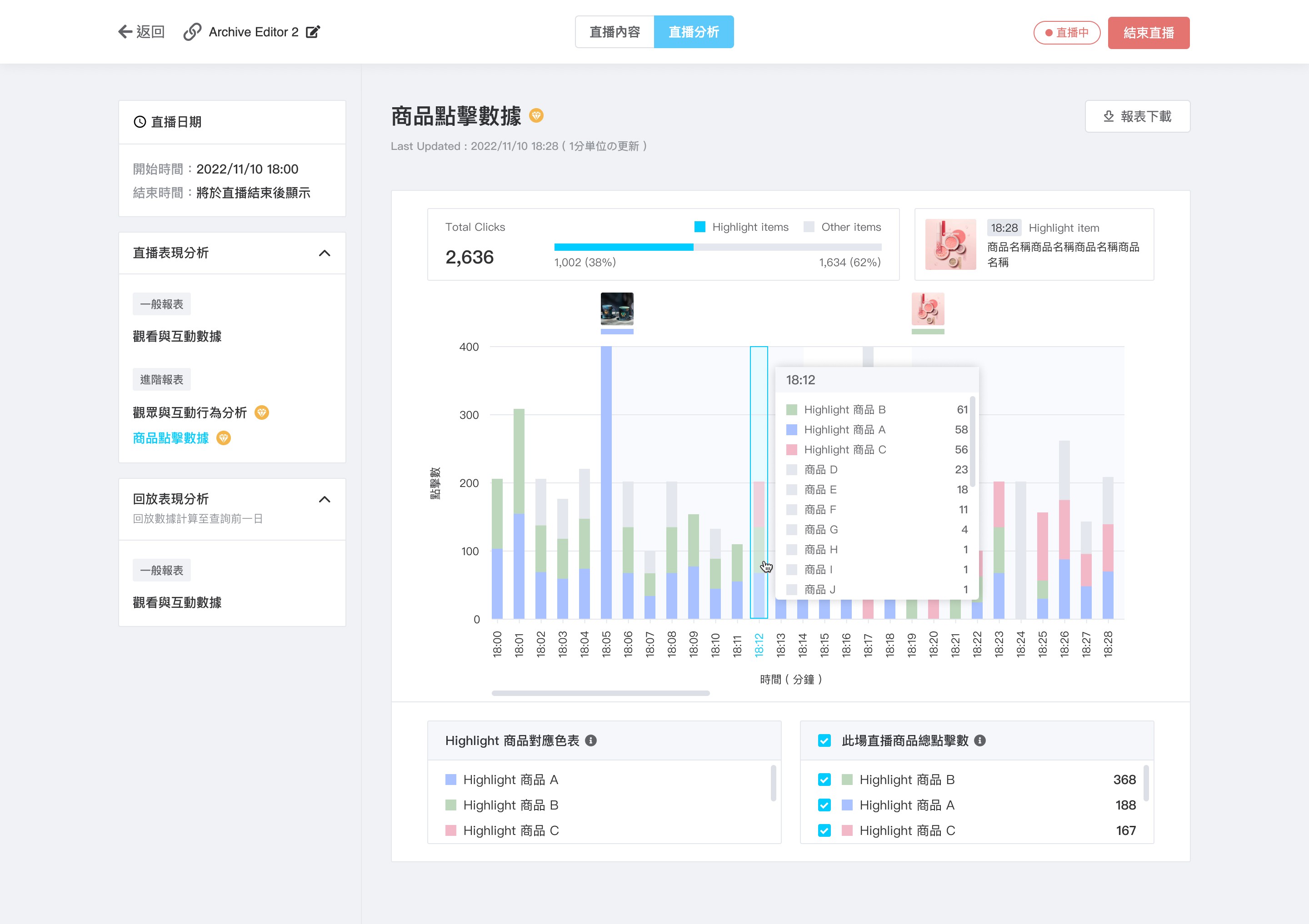 Dynamic Report is the product feature that provides to our users for viewing live live streaming performance, aiming to assist users in optimizing and reviewing the script for the next live streaming event.
