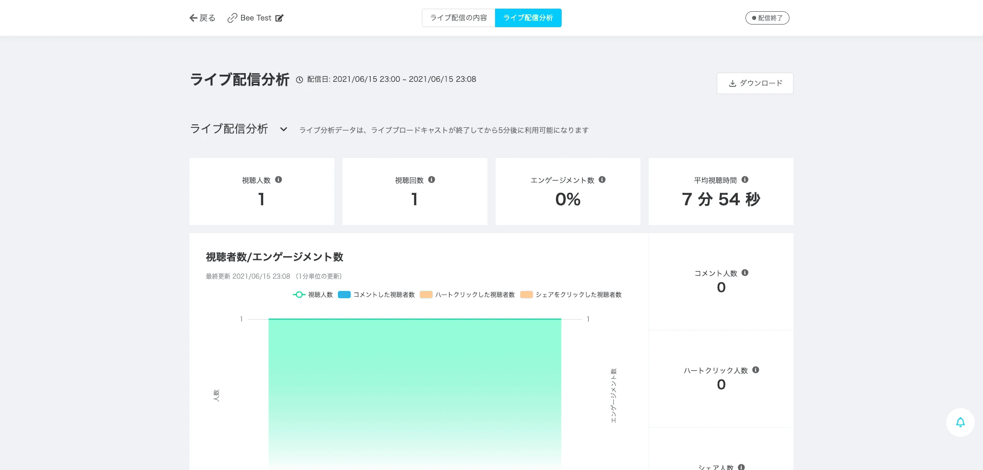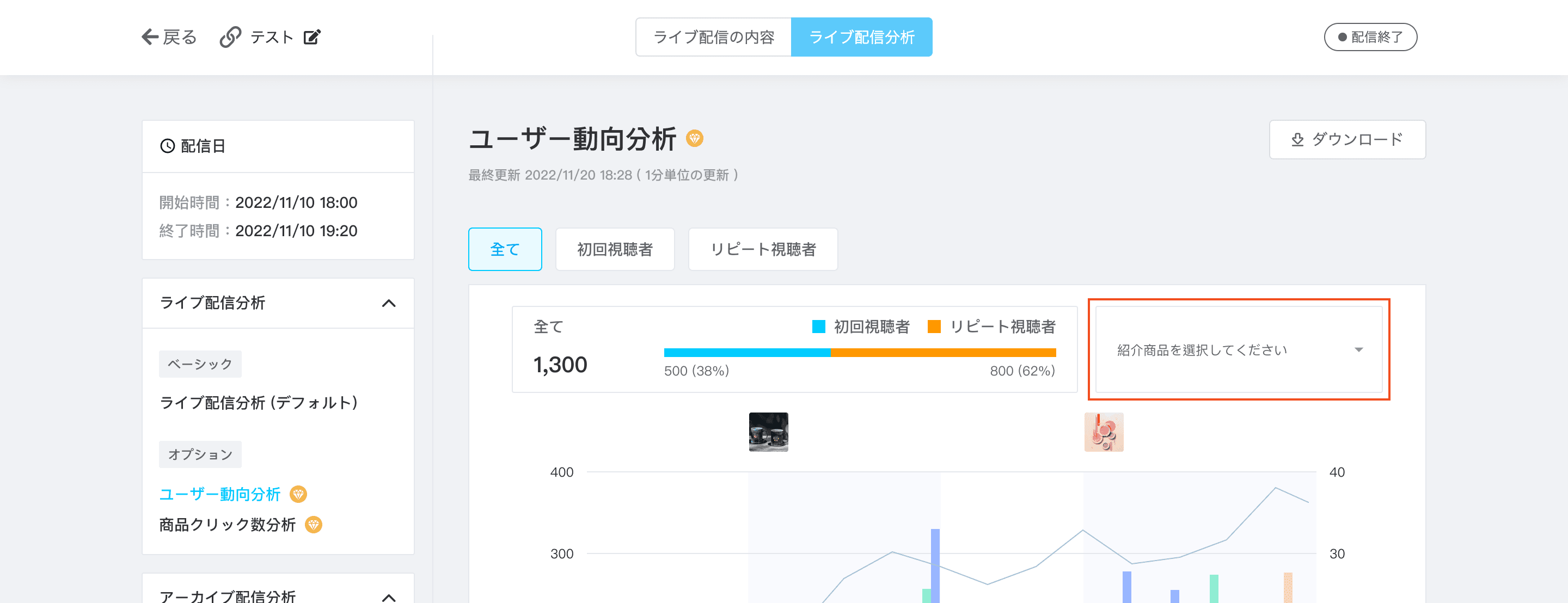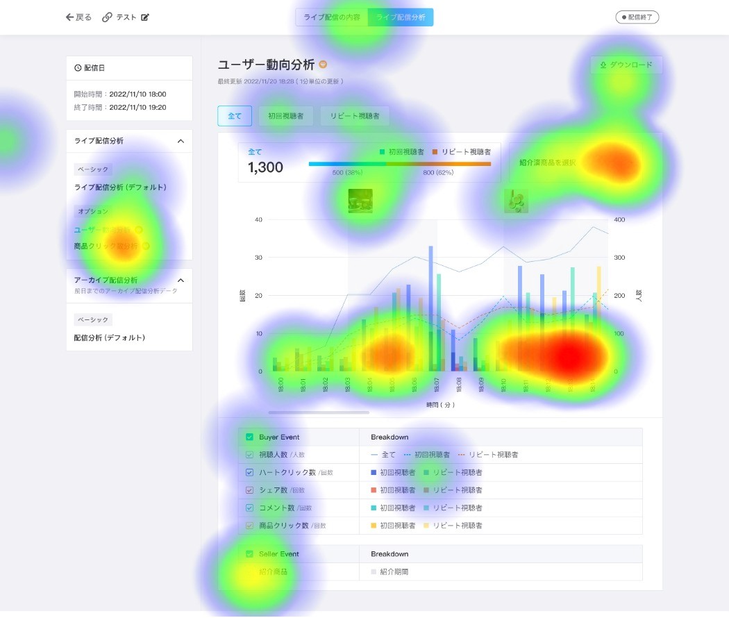ライブ終了後、「商品C紹介時のみのユーザー動向」データを確認したい