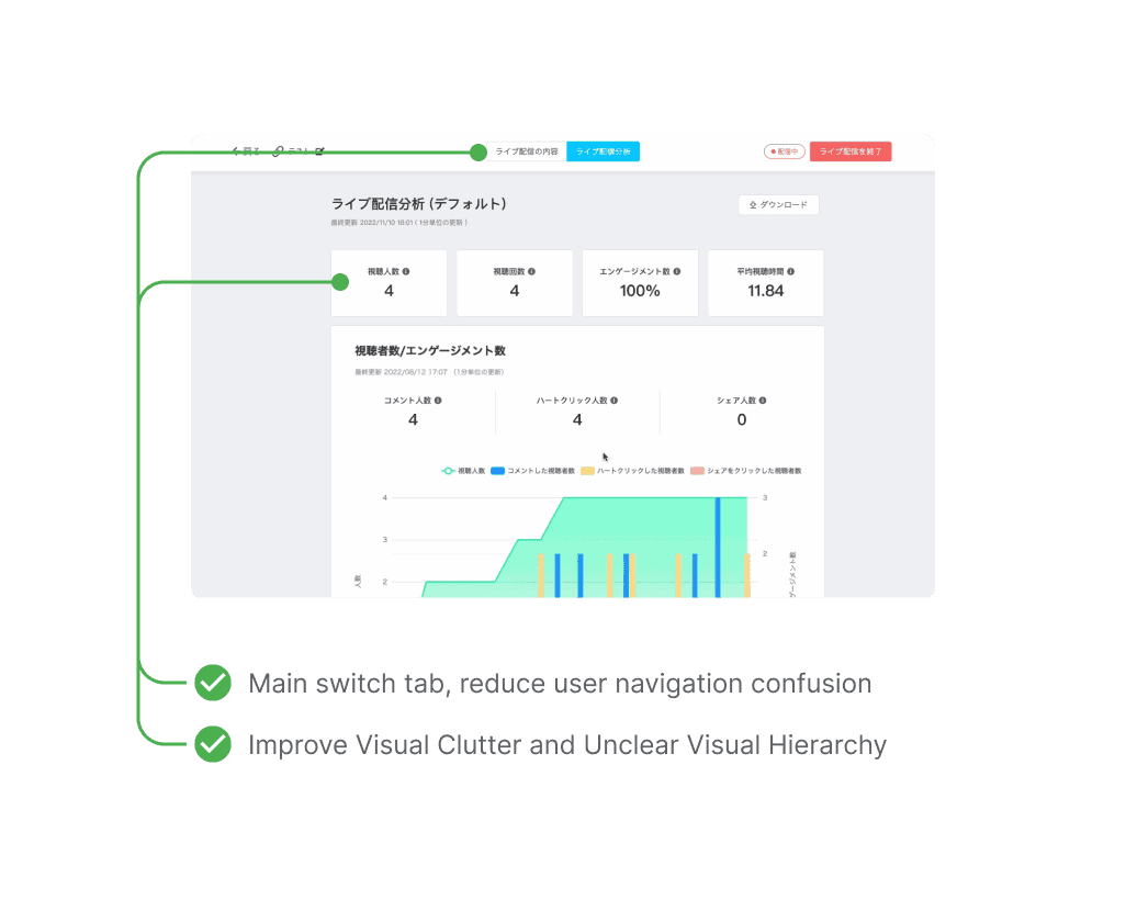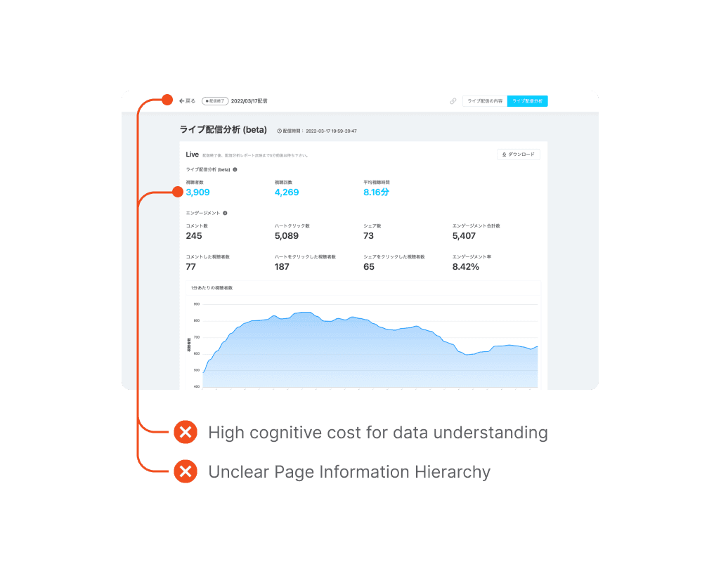 The current dashboard is not intuitive for real-time actions, requiring continuous scrolling and failing to provide effective assistance during the live stream.