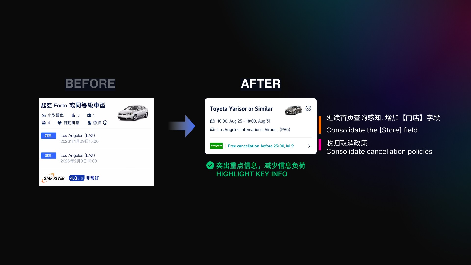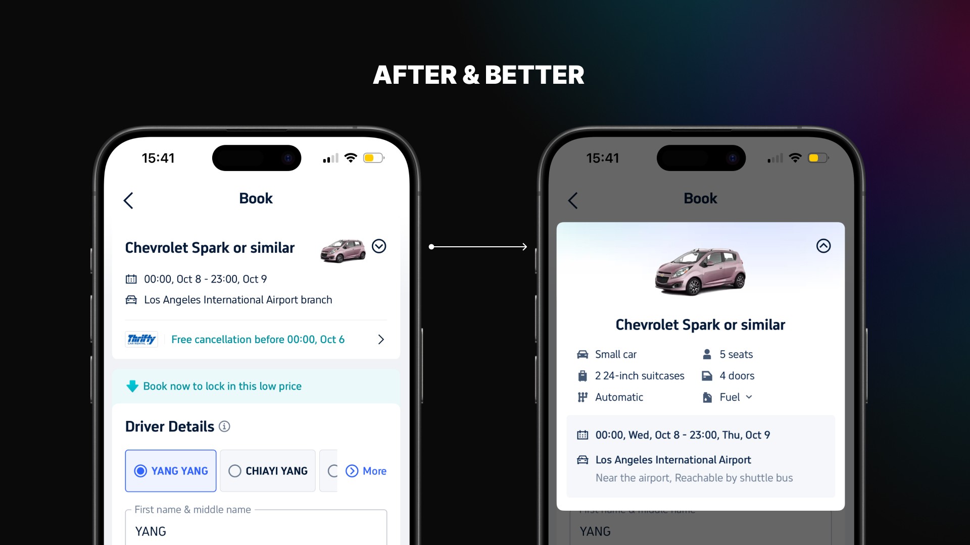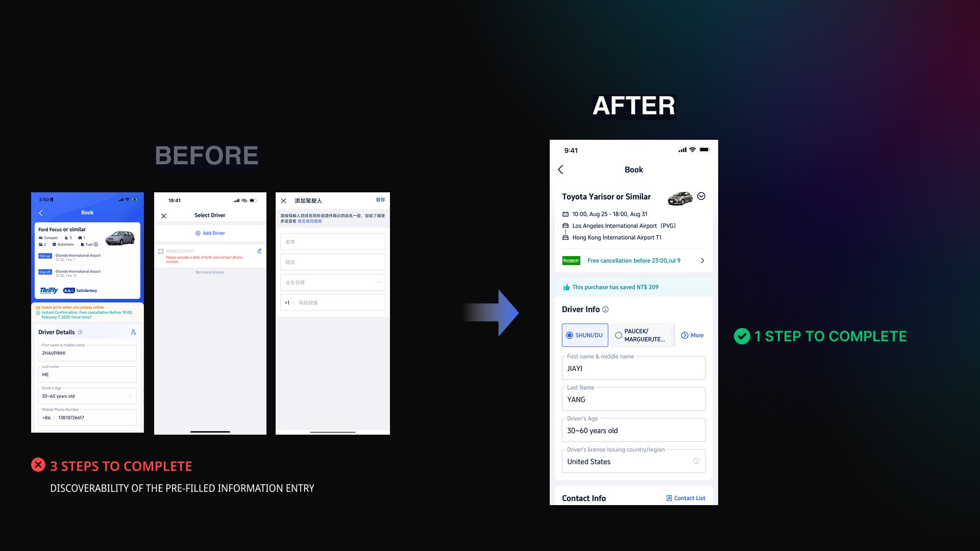 Trip.com Group is a global online travel platform serving users in 200+ regions with end-to-end services across flights, hotels, trains, car rentals and experiences. As a UX Designer on the Trip Car team, I focus on improving the international car rental journey. One major initiative involved redesigning the reservation form page, which showed the highest exit rate and longest dwell time across the flow.